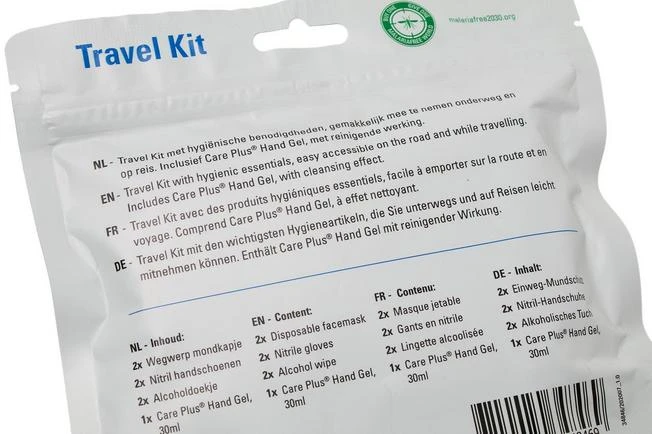 With this Care Plus Travel Kit you will always be assured of good hygiene on the road. In remote countries infectious diseases are always near, but with this kit you are always protected. The Kit contains the following items: