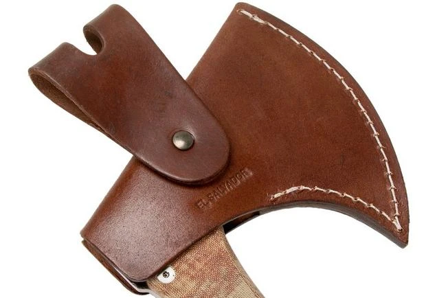 The Condor Mountain Pass is a full-tang hand axe. Because of its compact size you can easily take it with you when you go camping. It comes with a nice leather sheath.