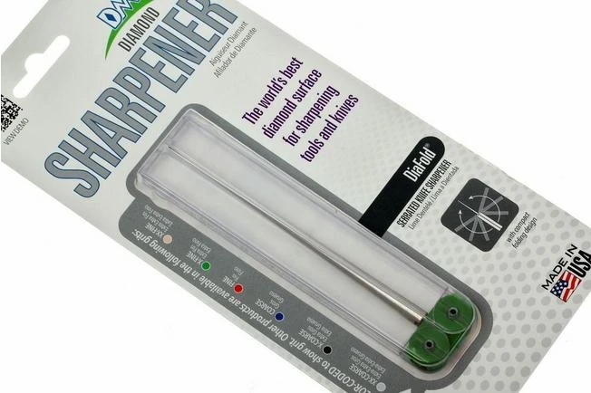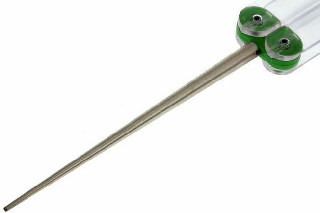 Just like a Diafold sharpening stone this conical diamond sharpening steel has the design of a butterfly knife. The handle is folded around the diamond sharpening steel so it is protected when it is not being used. And thanks to the handle, the sharpening is very easy.