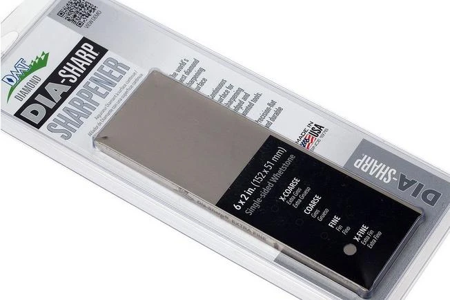 The DMT DiaSharp Bench Stone 6×2 D6E one-sided, extra fine is a compact sharpening stone. The extra fine side polishes the edge, leaving you with razor-sharp results. Diamond-coated sharpening stones quickly remove material and, depending on the grain size sharpen your knives razor-sharp. The advantage of diamond sharpening stones is that they don’t have to be lapped. With this DiaSharp stone the diamond particles are added to a 6 mm thick steel sheet. As such the flatness of this sharpening stone is guaranteed.
