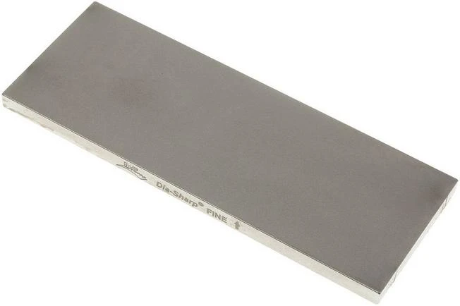 The DiaSharp Bench Stone D8F is a fine diamond-coated sharpening stone, but due to the diamond particles, it sharpens your knives as quickly as a sharpening stone with a medium grain. As such this sharpening stone is great when quickly sharpening your outdoor or pocket knife. The large size of this DMT DiaSharp Stone also ensures that this stone is great when sharpening larger knives.