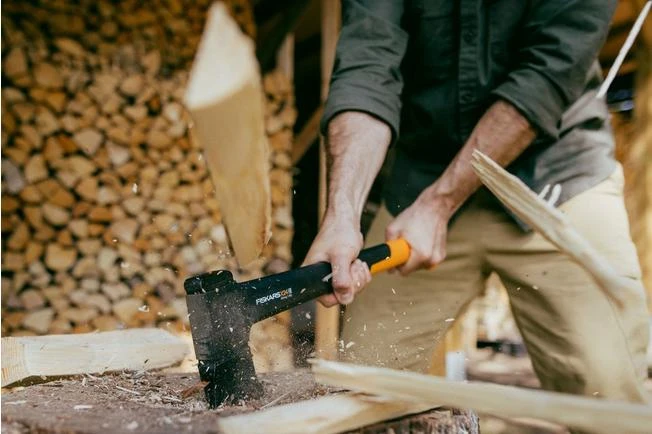 The Fiskars X24 Universal Axe M, felling axe is a very versatile felling axe. From making kindling to chopping logs up to about 30 cm in diameter. In addition, the handle of this axe is straight. It’s also great for bushcrafting purposes, as long as weight is not a big issue.