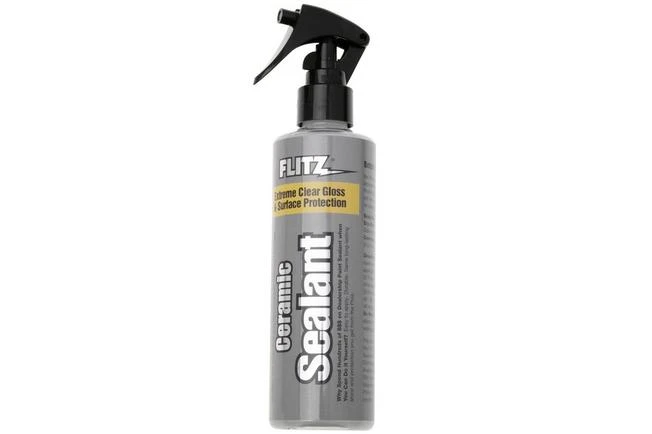 The Flitz Sealant water repellent ceramic spray, 236 ml is a spray that applies a water repellent ceramic layer that will last a year! The spray can safely be used on all metals, fiberglass, coatings, plastic, stone, glass and all other solid surfaces. The spray protects against salts, UV-radiation, water stains and other types of dirt.