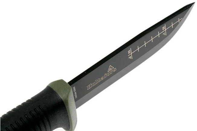 TheHultafors Ok4 Outdoor knife is a popular fixed bushcraft knife. It looks similar to the Craftsman’s knife GH-knife but is optimized for outdoor use. The black coating protects the carbon-steel blade from corrosion. The back of the blade is flat, which means it works better with fire steel. A five-centimetre long ruler is printed on the side of the blade. The Hultafors OK4 is an ideal, budget-friendly option for bushcraft, survival and other outdoor hobbies.