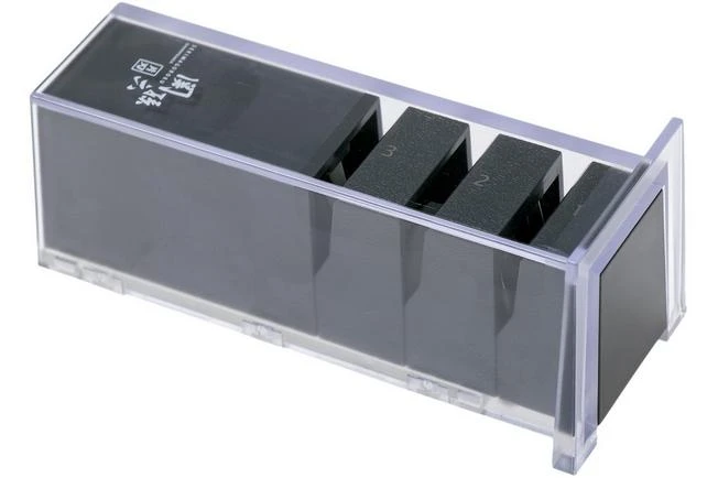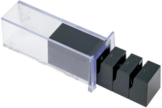 This KAI knife sharpener AP-0162 used both diamond and ceramics as abrasive. This makes it perfect when sharpening hard types of steel. With this KAI sharpener you can sharpen Japanese knives with a one-sided grind in three phases. From blunt to razor-sharp in no-time!