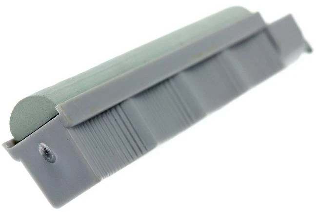 Sharpening stone that can be used with the Lansky sharpening system. Because of the round shape of the Sharpening stone it is this ideal for (pocket) knives that have a curved blade. These knives are hard to sharpen on a ‘normal’ sharpening stone.