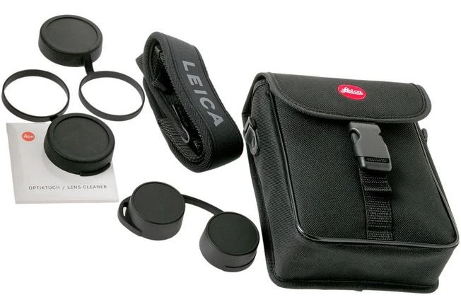 carrying strap, case, cleaning cloth, objective protection