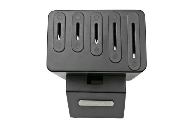 The Lion Sabatier Moscou 668280 knife block is a knife block with enough room for five kitchen knives. Each slot is enhanced with a ceramic knife sharpener. It will sharpen your knife every time you take your knife from the knife block. As such your kitchen knives will always stay sharp.