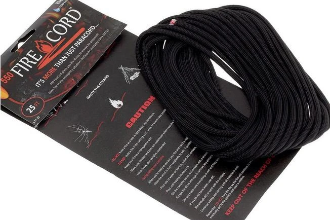 With the Live Fire Gear Firecord making a fire will be a piece of cake. This is the famous American 550 paracord as most people know it. However, in addition to the seven nylon strands a waterproof wick has been added to the whole. The wick might remind you of a wick you often see on every type of candle, only slightly thicker. In case of an emergency you can pull the wick out to create a fire.