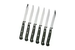 The Maserin TEGI 2500TG02-N 6-piece kitchen knife set, black is a set with different stylish kitchen knives. From a long sujihiki to a small turning knife, with this knife set you will have the right knife at your disposal for every single task in the kitchen. This set comes with bag and six knife guards.