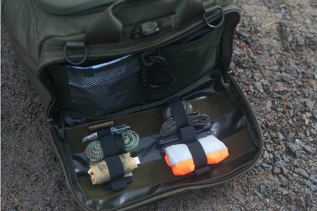 The Savotta Elastic Organizer x3 is a hook-to-loop organizer insert with a Velcro backing. Use this insert to keep your gear neatly stacked away in your back. For example: a water filter, first aid supplies, pens or a thick chocolate bar. Each organizer has two small pen webbings on either side. Furthermore, the organizer is equipped with both large webbing and flat webbing, these flat webbing are situated beneath the large webbing. The large loops are 40mm x 20mm.