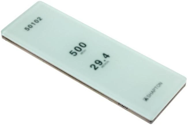 This Shapton Glass Stone grain 600 is a sharpening stone that will help you sharpen knives that have lost their sharpness. Grain 600 is coarse enough to quickly remove material and restore the edge of a blunt knife, but not coarse enough to restore a damaged edge. For it you need a coarser sharpening stone. The sharpening stone sharpens quickly and evenly. Which is exactly what we’re looking for from a high-quality sharpening stone. Contrary to what you might expect from the name, the glass doesn’t do the sharpening. You sharpen on a high-quality Japanese whetstone. A layer of tempered glass is attached to this to prevent bending.