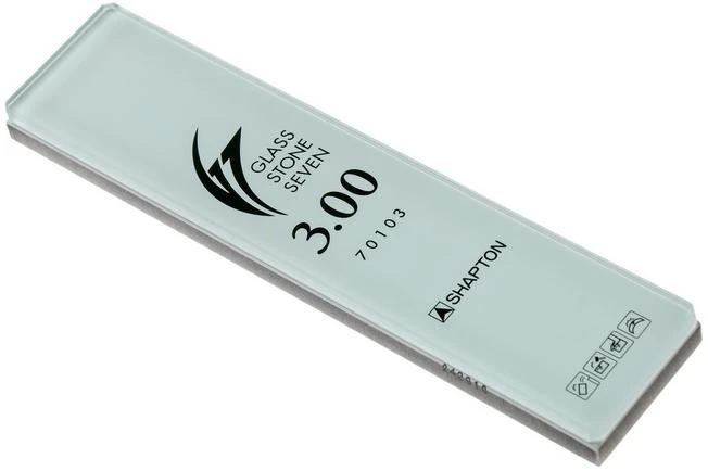 The Shapton Glass Stone Seven 3.00 micron, 70103 is a fine sharpening stone from the Shapton Glass Stone Seven collection. With a grain size that is comparable to a 4000 grit Japanese water stone, this stone is mainly meant to sharpen blunt knives. If you wish to sharpen blunt knives it is best if you use the Glass Stone Seven sharpening stones with a higher micron.