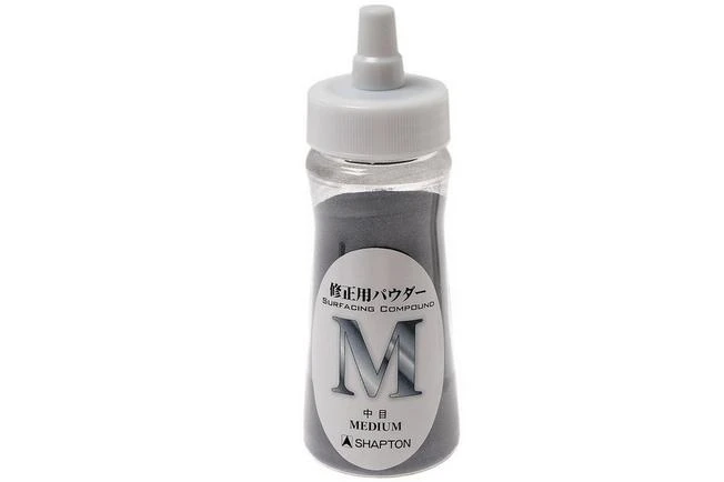 Shapton Lapping Powder is meant to help you lap your (Shapton) sharpening stones. The bottle is filled with medium silicon carbide grains. You use these grains in combination with, for instance, the Shapton Naoru Lapping System or a glass lapping plate.
