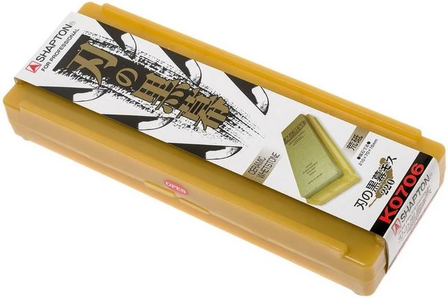 With this Shapton Pro Stone grain 220 you can sharpen quickly and evenly. This ceramic Japanese sharpening stone has a grit size of 220, which is fairly coarse. The sharpening stone quickly removes material, Perfect when restoring a damaged edge. The stone is suited for sharpening almost all types of knives. From outdoor knives to kitchen knives, from pocket knives to chisels.