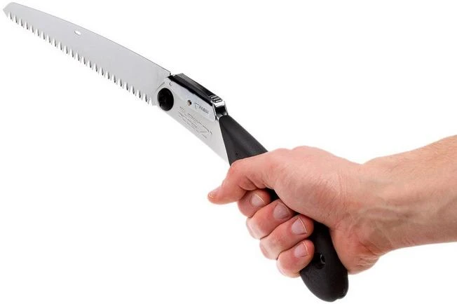 The Silky Super Accel is a useful folding saw perfect for outdoor use. When you go out always bring a compact light-weight folding saw to accompany your knife and axe. When you do you will be more flexible when it comes to collecting wood for your camp(fire). The handle is made from comfortable rubber material and feels great in hand.