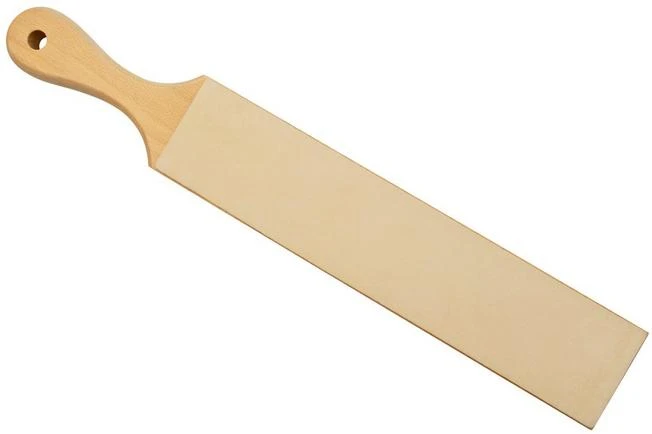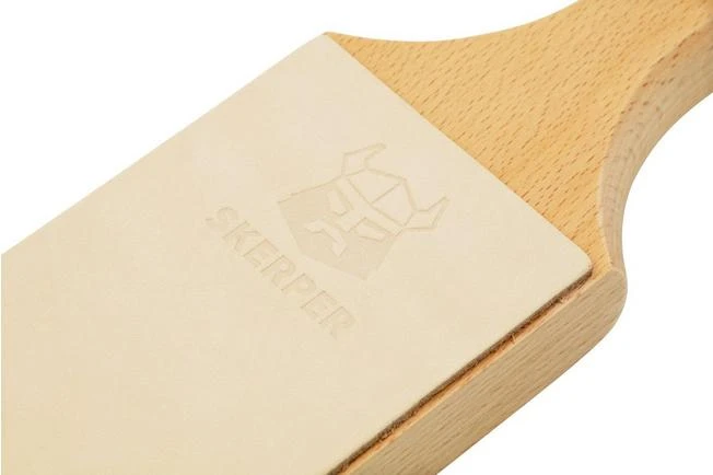 The Skerper Paddle Strop is a great stropping paddle of a considerate size. This allows you to strop all kinds of sharp edges: from pocket knives to kitchen knives to chisels and gouges. The size of the paddle make it particularly suitable for larger blades. The core of the paddle is made out of Oriental plane tree wood. A fine wood with a beautiful drawing of small stripes in the grain. On both sides the leather stropping surface is attached. The leather has a very fine finish for an extremely smooth result. But how exactly does stropping work? We will explain it to you! We wrote an article and made a video explaining in great detail how to strop your knife to razor-sharpness. Read more about stropping here.
