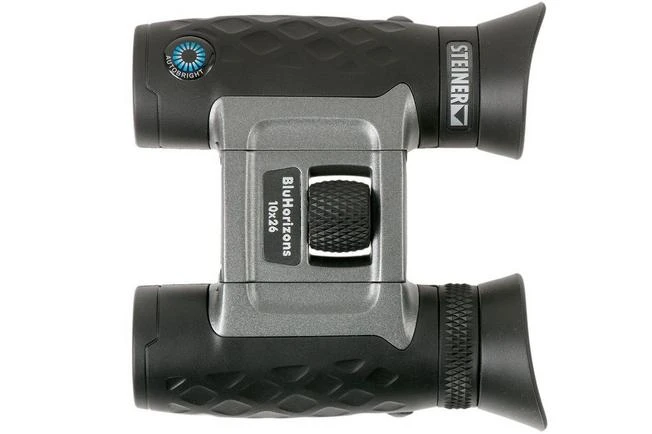 The Steiner BluHorizons 10×26 is a compact, light-weight and extremely robust pair of binoculars for outdoor adventurers. This unique pair is enhanced with Steiners exclusive Autobright Sunlight Adaptive Lens Technology. This is a solar protection factor for the eyes. This technology automatically adjusts the clarity to the best light in any situation for maximum clarity. As such you are never bothered by bright glares du0ring a sunset, when you are out on the water or in the snow. With these binoculars you comfortably observe the world.