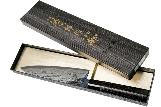 The Tojiro Shippu Black damascus chef’s knife 18 cm is the smallest, but definitely not the least of the three chef’s knife from the Shippu black collection. The knife is easy to use because the 18 cm long blade is slightly shorter than your average chef’s knife. As a result this chef’s knife is perfect for cutting small to average size products.