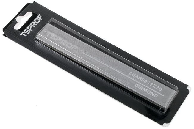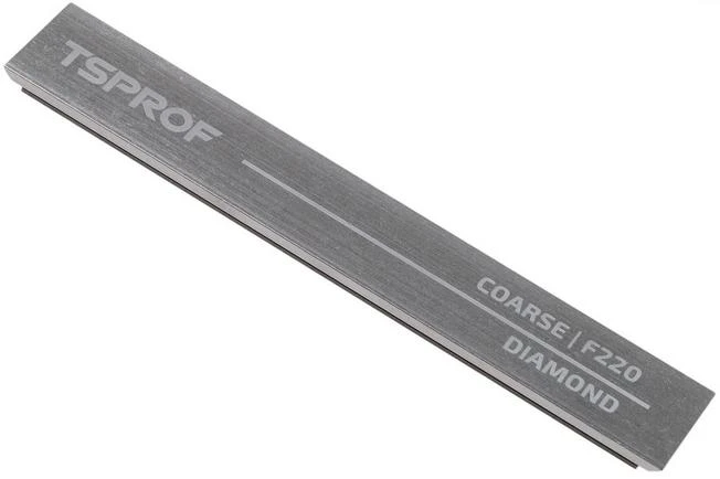 The TSPROF Blitz diamond-coated sharpening stone coarse is suited to sharpen very blunt knives. Because of the coarse diamond particles you will quickly end up with a straight edge after which you can use a finer sharpening stone for razor-sharp results.
