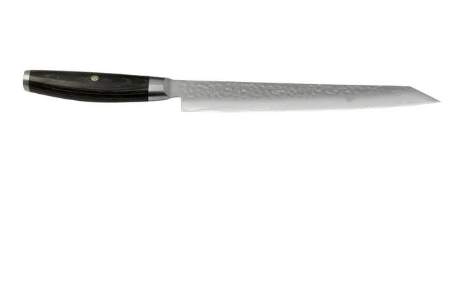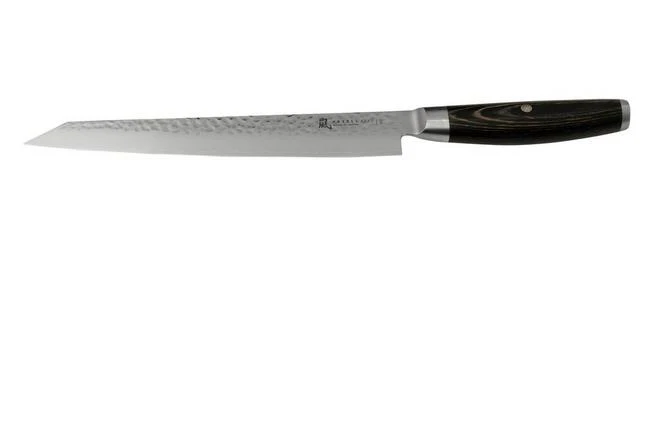 The Yaxell Ketu carving knife 23 cm is a stylish Japanese kitchen knife that will help you cut beautiful slices of meat. The low blade is enhanced with dimples to make sure food doesn’t stick to the blade. As such you can easily cut thin slices without tearing the meat. The sharp tip is perfect for small, delicate tasks such as removing tendons or fat.