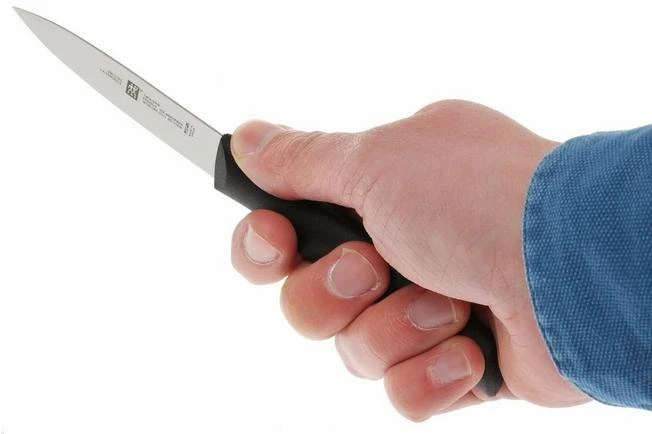 This Zwilling Twin Grip peeling knife is incredibly practical for daily use. This relatively light-weight knife is made from top-quality materials. The plastic handle is ergonomically shaped and seamlessly merges with the blade. As such bacteria cannot accumulate underneath the handle, making these knives incredibly hygienic.